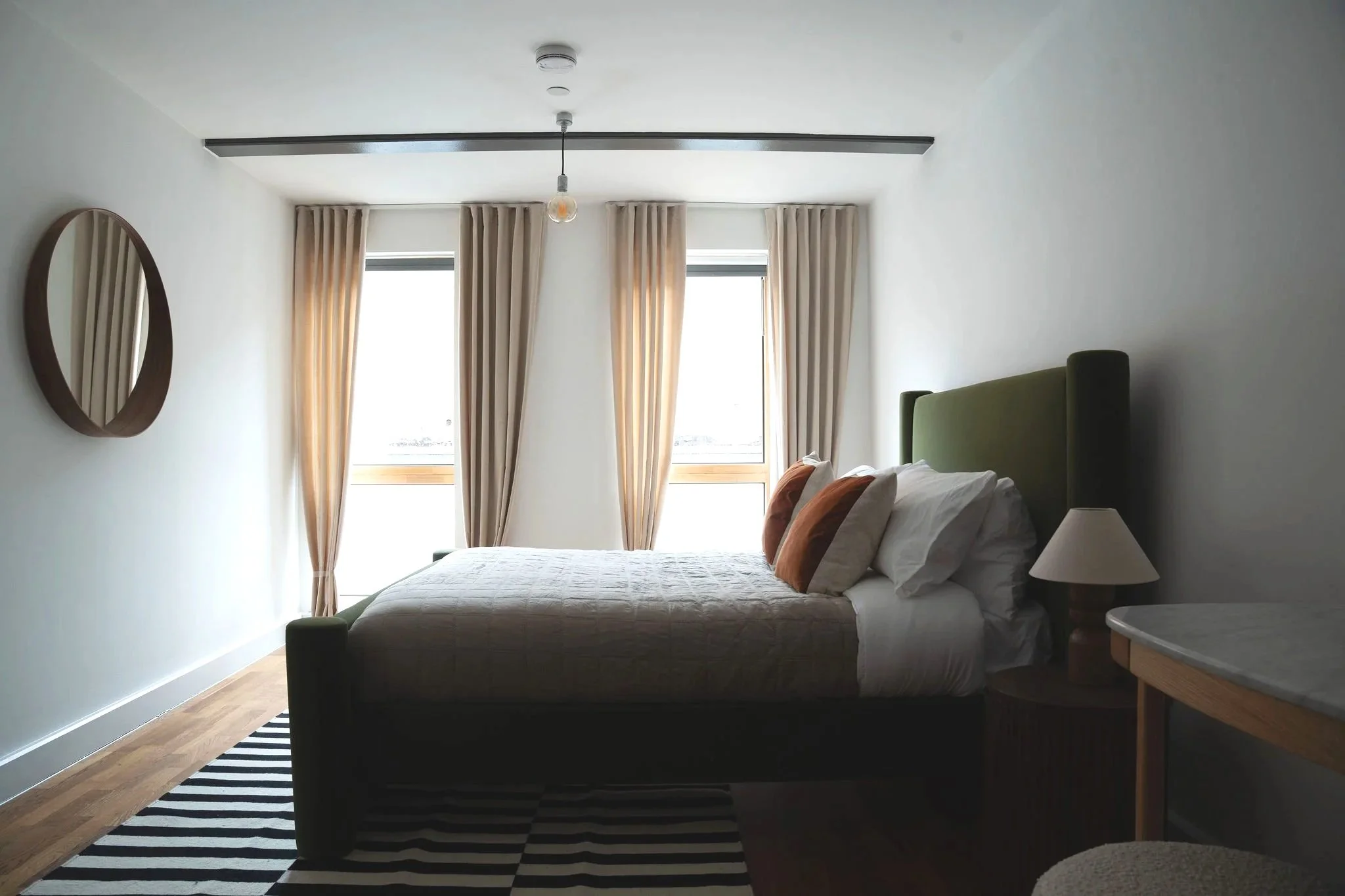 From the moment we stepped inside, the spaces were full of potential - dark, tired, but brimming with history. Our design approach focused on revealing and enhancing the building’s industrial soul: exposed brickwork, rhythmic arches and soaring windows were restored, while warmth and texture were layered in through a considered material palette, soft furnishings, and bespoke details. Signature touches, such as button-mould inspired tiles and hand-crafted furniture, nod to the building’s past while keeping interiors fresh and contemporary.